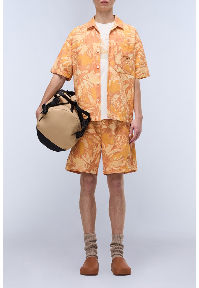 - crem Material: bumbac Imprimeu: abstract Stil: casual Croiala: relaxed fit Guler: cu revere Lungime maneca: maneca scurta Buzunare: unul aplicat pe piept Sistem inchidere: nasturi Compozitie Exterior: 100% bumbac