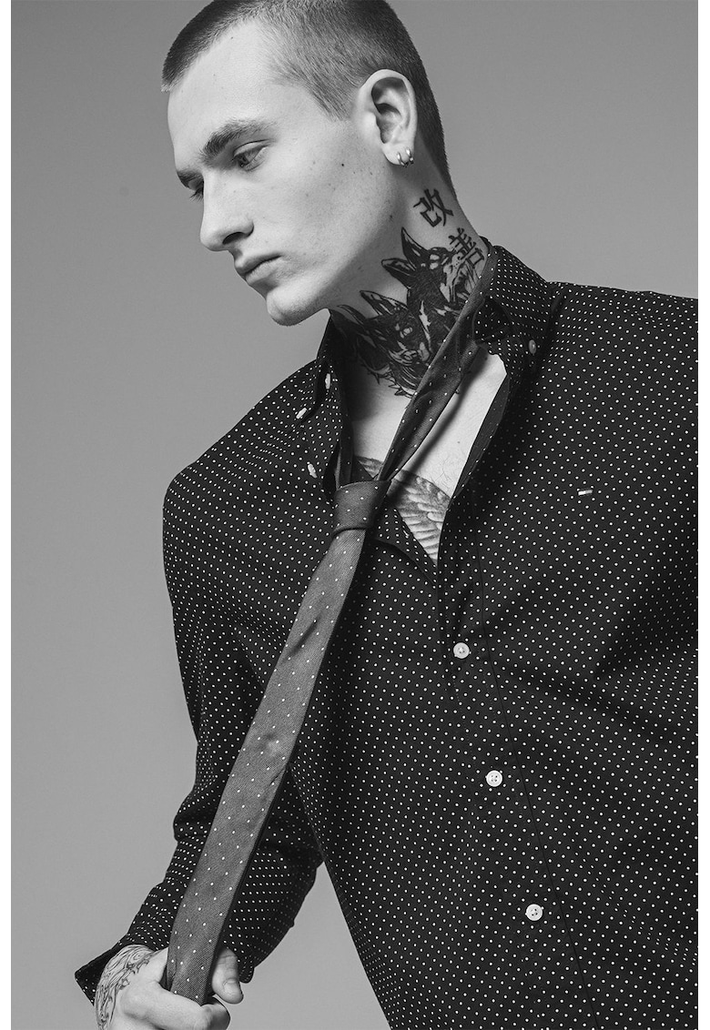- bleumarin Material: bumbac Imprimeu: buline Stil: elegant Croiala: regular fit Lungime maneca: maneca lunga Sistem inchidere: nasturi Compozitie Exterior: 100% bumbac Info model Modelul poarta un produs de marimea M. Marimi model: 188 cm inaltime