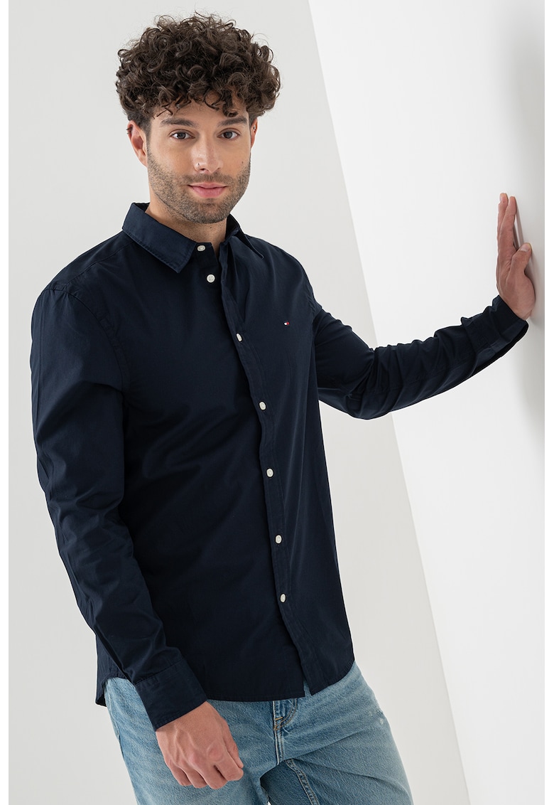 - poplin Imprimeu: uni Stil: casual Croiala: slim fit Guler: clasic Maneci: cu mansete cu nasturi Lungime maneca: maneca lunga Sistem inchidere: nasturi Compozitie Exterior: 100% bumbac Info model Modelul poarta un produs de marimea M. Marimi model: 179 cm inaltime