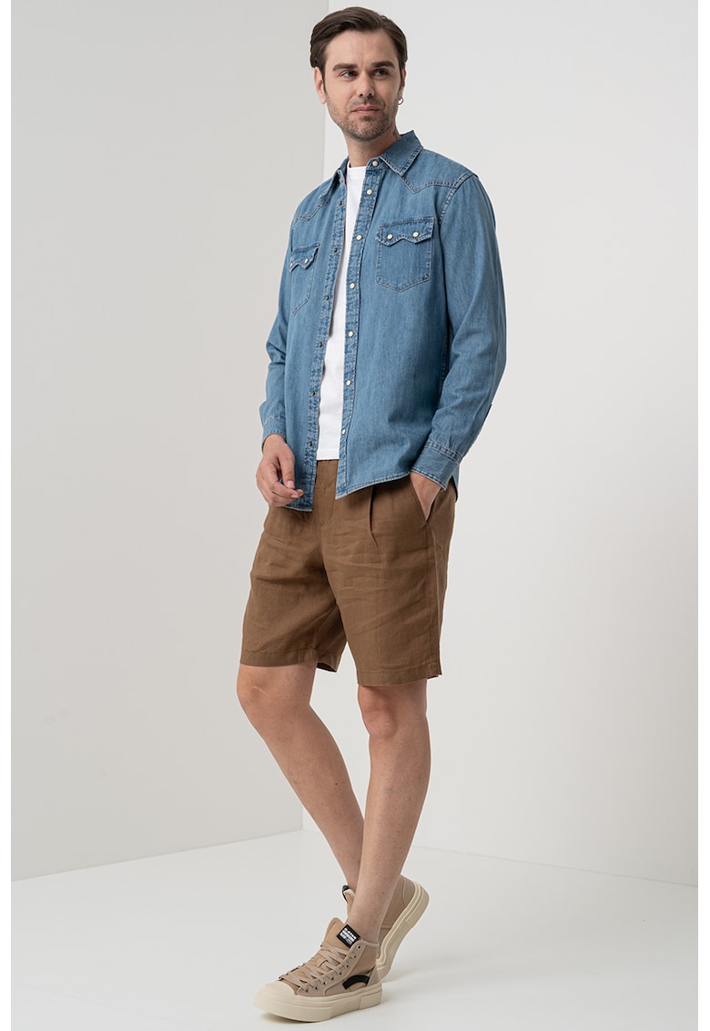 Caracteristici Culoare: albastru melange Material: denim Imprimeu: uni Stil: casual Croiala: regular fit Lungime maneca: maneca lunga Buzunare: 2 pe piept Sistem inchidere: capse Compozitie Exterior: 100% bumbac Info model Modelul poarta un produs de marimea M. Marimi model: 195 cm inaltime