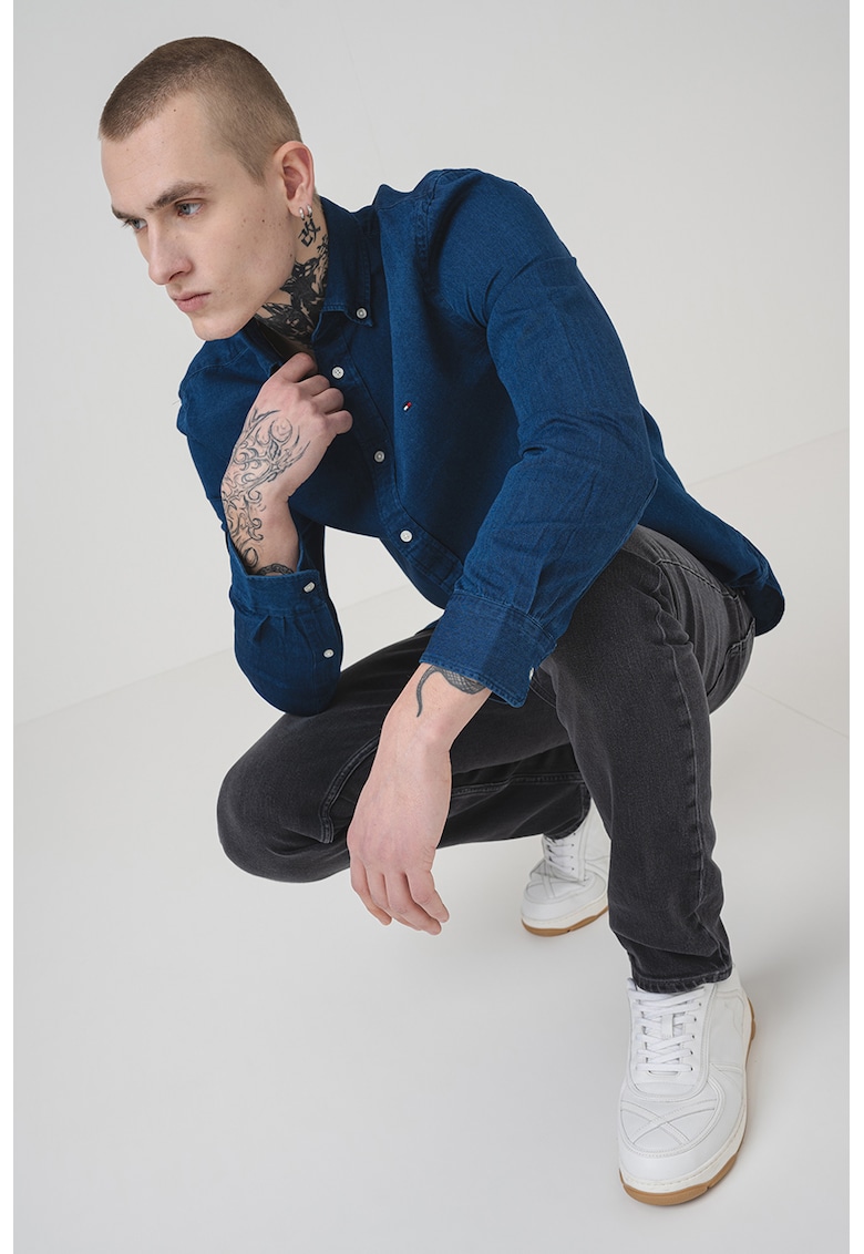 Caracteristici Culoare: indigo Material: bumbac Imprimeu: uni Stil: casual Croiala: regular fit Guler: clasic Lungime maneca: maneca lunga Sistem inchidere: nasturi Compozitie Exterior: 100% bumbac Info model Modelul poarta un produs de marimea M. Marimi model: 188 cm inaltime