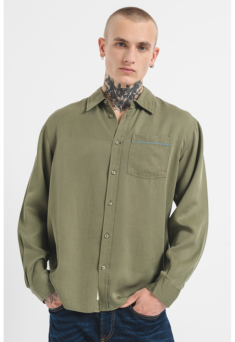 Caracteristici Culoare: verde sparanghel Material: lyocell Imprimeu: uni Stil: casual Croiala: regular fit Guler: ascutit Maneci: mansete cu nasturi Lungime maneca: maneca lunga Sistem inchidere: nasturi Compozitie Exterior: 100% lyocell Info model Modelul poarta un produs de marimea M. Marimi model: 188 cm inaltime