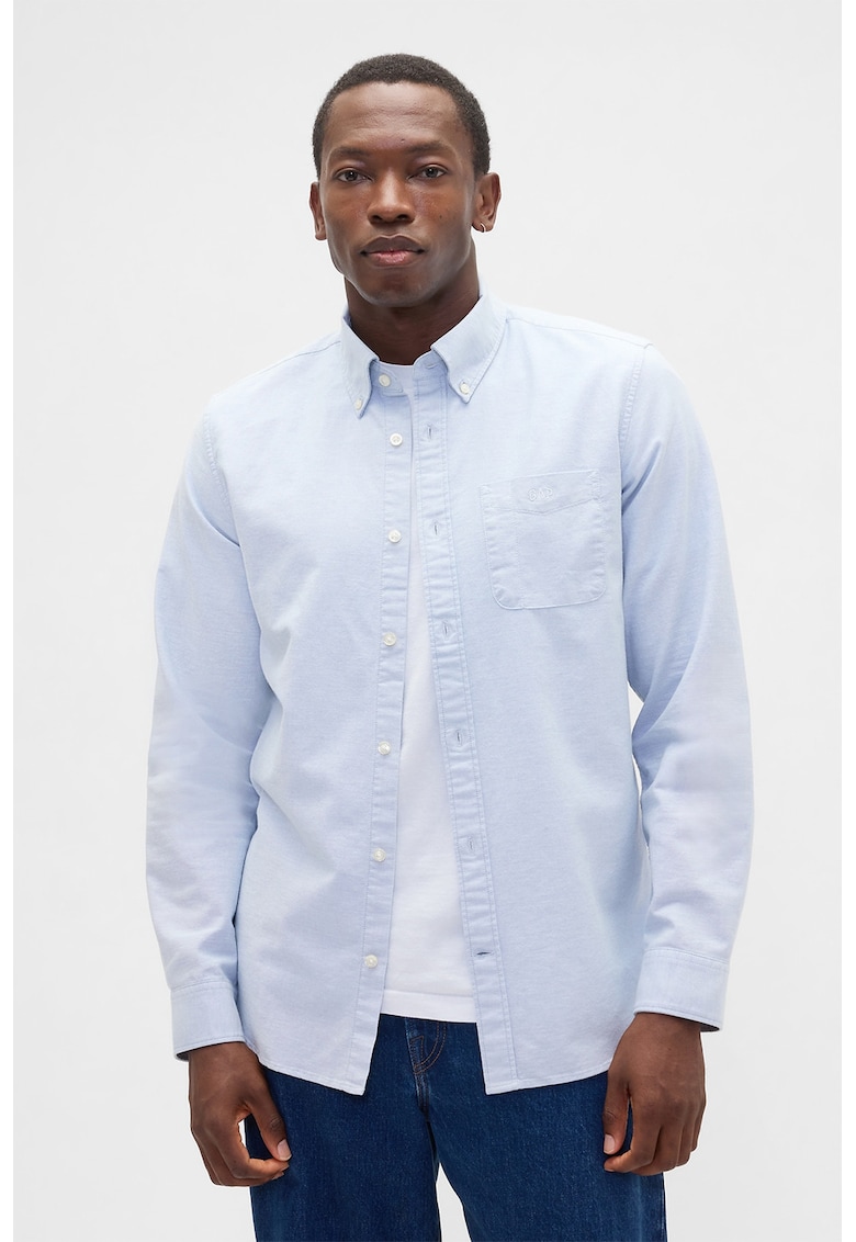 Caracteristici Culoare: albastru deschis Material: bumbac Imprimeu: uni Stil: elegant Croiala: regular fit Guler: oxford Lungime maneca: maneca lunga Buzunare: 1 buzunar pe piept Sistem inchidere: nasturi Compozitie Exterior: 98% bumbac