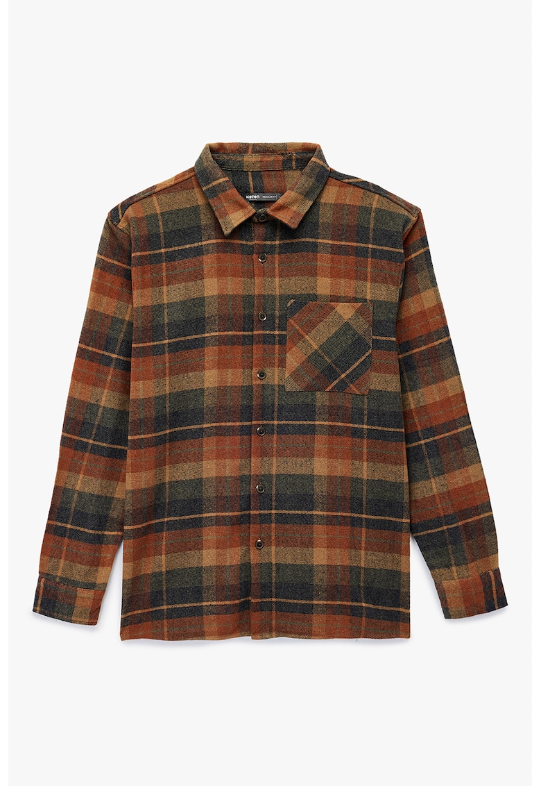- bumbac Imprimeu: carouri Stil: casual Croiala: regular fit Guler: ascutit Lungime maneca: maneca lunga Buzunare: 1 aplicat pe partea din fata Sistem inchidere: nasturi Compozitie Exterior: 59% poliester