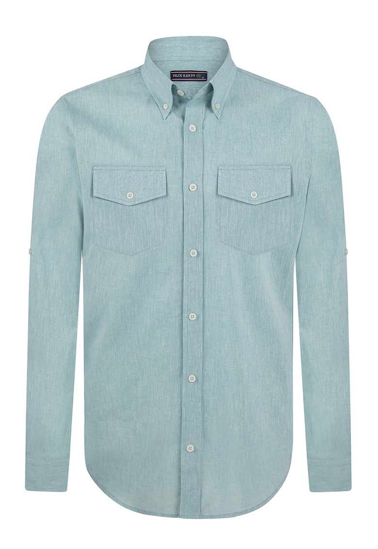- in Imprimeu: uni Stil: casual Croiala: regular fit Guler: fixat cu nasturi Maneci: mansete cu nasturi Lungime maneca: maneca lunga Buzunare: 2 pe piept Sistem inchidere: nasturi Compozitie Exterior: 85% bumbac