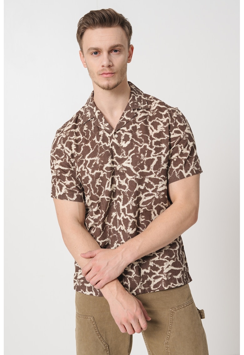 - in Imprimeu: grafic Stil: casual Croiala: regular fit Guler: cu revere Lungime maneca: maneca scurta Sistem inchidere: nasturi Compozitie Exterior: 70% viscoza