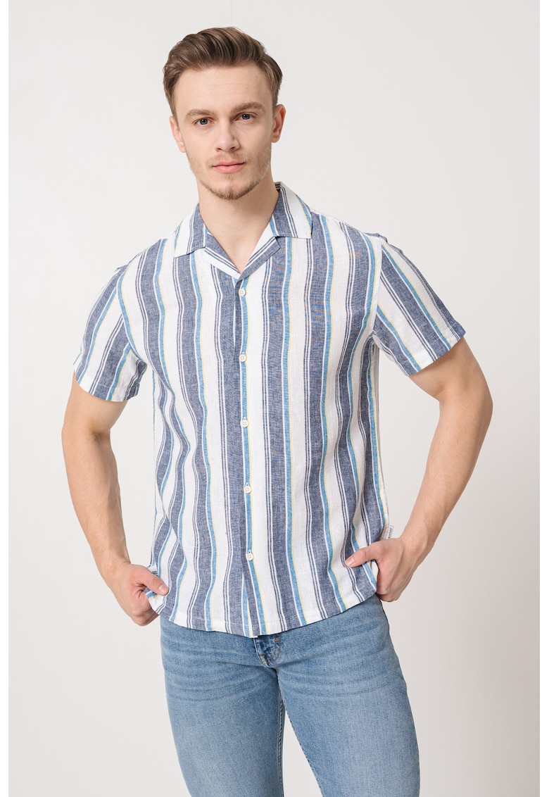- in Imprimeu: dungi Stil: casual Croiala: regular fit Guler: ascutit Lungime maneca: maneca scurta Sistem inchidere: nasturi Compozitie Exterior: 55% in
