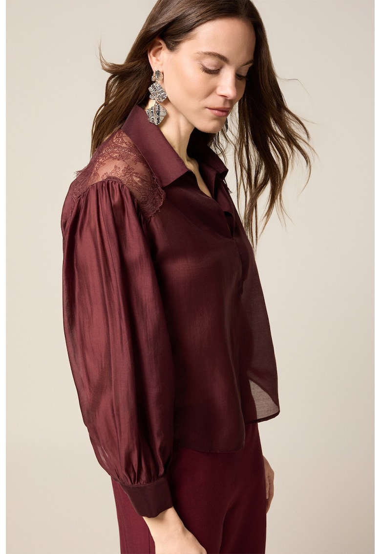 - lyocell Croiala: regular fit Guler: clasic Lungime maneca: maneca lunga Detalii: aspect semi transparent Sistem inchidere: nasturi Compozitie Exterior: 83% lyocell