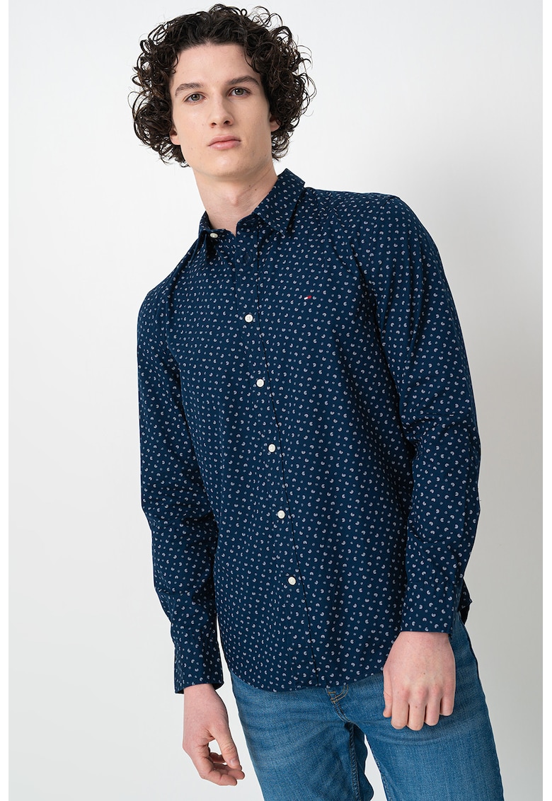 Caracteristici Culoare: albastru inchis Material: bumbac Imprimeu: buline Stil: casual Croiala: regular fit Guler: clasic Maneci: cu mansete Lungime maneca: maneca lunga Sistem inchidere: nasturi Compozitie Exterior: 100% bumbac Info model Modelul poarta un produs de marimea M. Marimi model: 189 cm inaltime