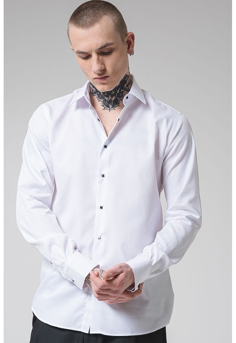 Caracteristici Culoare: alb Material: bumbac Imprimeu: uni Stil: casual Croiala: regular fit Guler: ascutit Maneci: mansete cu nasturi Lungime maneca: maneca lunga Sistem inchidere: nasturi Compozitie Exterior: 100% bumbac Info model Modelul poarta un produs de marimea 40. Marimi model: 188 cm inaltime