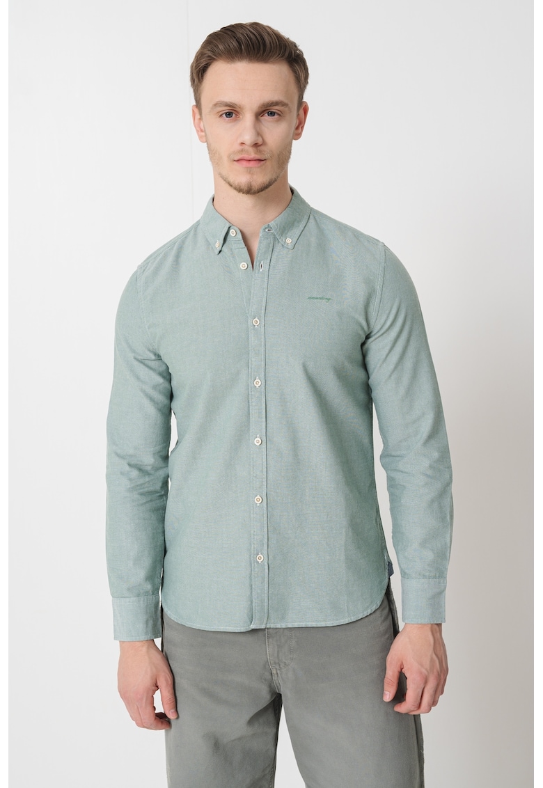 Caracteristici Culoare: verde deschis melange Material: bumbac Imprimeu: uni Stil: elegant Croiala: regular fit Lungime maneca: maneca lunga Sistem inchidere: nasturi Compozitie Exterior: 100% bumbac Info model Modelul poarta un produs de marimea M. Marimi model: 191 cm inaltime