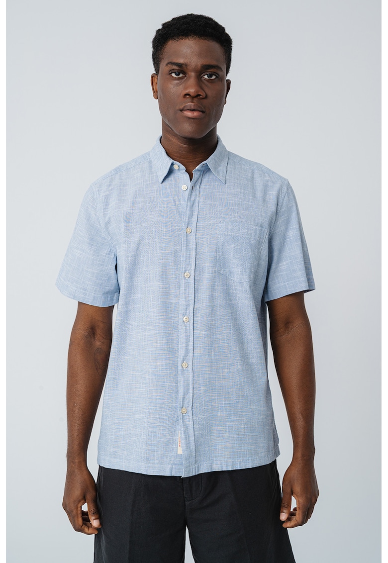 Caracteristici Culoare: albastru pastel Material: bumbac Imprimeu: uni Stil: casual Croiala: relaxed fit Guler: ascutit Lungime maneca: maneca scurta Buzunare: unul aplicat pe piept Sistem inchidere: nasturi Compozitie Exterior: 100% bumbac Info model Modelul poarta un produs de marimea M. Marimi model: 184 cm inaltime