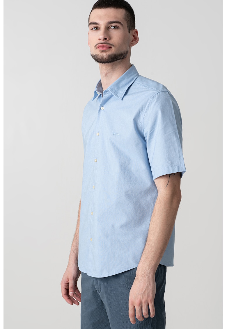 Caracteristici Culoare: albastru azur Material: bumbac Imprimeu: uni Stil: casual Croiala: slim fit Lungime maneca: maneca scurta Sistem inchidere: nasturi Compozitie Exterior: 100% bumbac Info model Modelul poarta un produs de marimea M. Marimi model: 190 cm inaltime