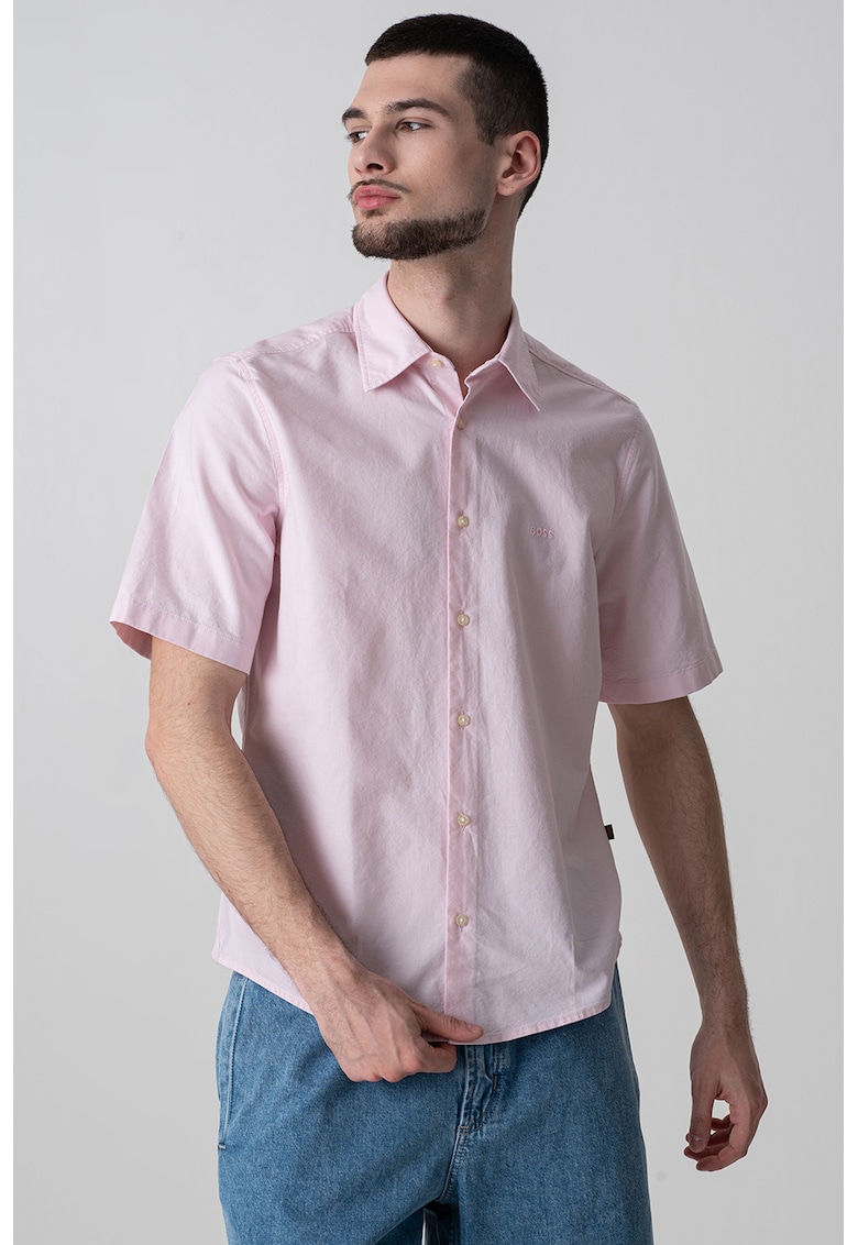 Caracteristici Culoare: roz pastel Material: bumbac Imprimeu: uni Stil: casual Croiala: slim fit Lungime maneca: maneca scurta Sistem inchidere: nasturi Compozitie Exterior: 100% bumbac Info model Modelul poarta un produs de marimea M. Marimi model: 190 cm inaltime
