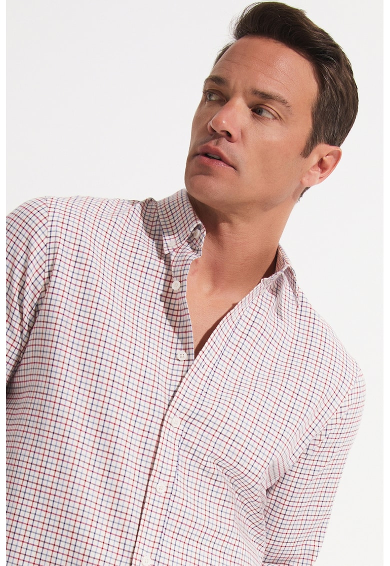 - caramiziu Material: bumbac Imprimeu: carouri Stil: casual Croiala: regular fit Guler: fixat cu nasturi Maneci: cu mansete cu nasturi Lungime maneca: maneca lunga Sistem inchidere: nasturi Compozitie Exterior: 100% bumbac