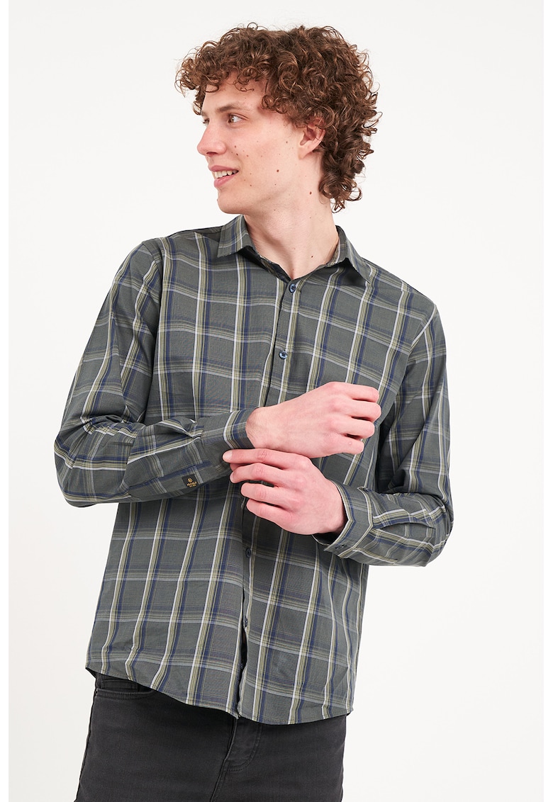 - verde feriga Material: bumbac Imprimeu: carouri Stil: casual Croiala: regular fit Guler: clasic Maneci: cu mansete cu nasturi Lungime maneca: maneca lunga Sistem inchidere: nasturi Compozitie Exterior: 100% bumbac