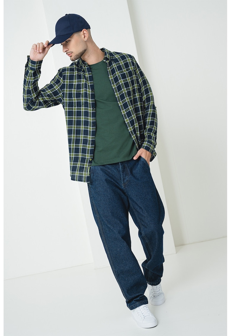 - bleumarin Material: bumbac Imprimeu: carouri Stil: casual Croiala: regular fit Guler: fixat cu nasturi Maneci: cu mansete cu nasturi Lungime maneca: maneca lunga Buzunare: aplicate pe piept Sistem inchidere: nasturi Compozitie Exterior: 100% bumbac Info model Modelul poarta un produs de marimea M. Marimi model: 190 cm inaltime