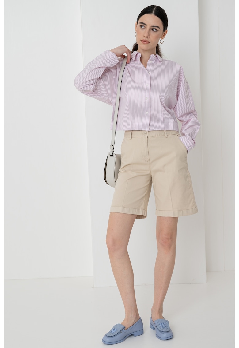- lila Imprimeu: dungi Stil: casual Material: bumbac Croiala: lejer Guler: ascutit Lungime maneca: maneca lunga Sistem inchidere: nasturi Compozitie Exterior: 100% bumbac Info model Modelul poarta un produs de marimea S. Marimi model: 177 cm inaltime