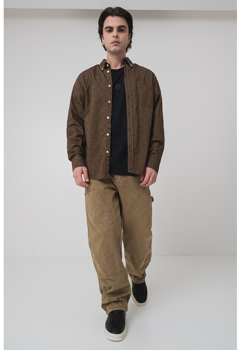 - maro Material: bumbac Imprimeu: grafic Stil: casual Croiala: regular fit Guler: clasic Lungime maneca: maneca lunga Compozitie Exterior: 100% bumbac Info model Modelul poarta un produs de marimea M. Marimi model: 180 cm inaltime