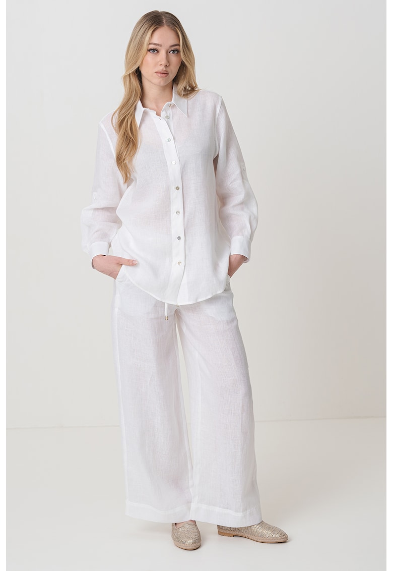 - transparent Imprimeu: uni Stil: elegant Material: in Croiala: lejer Lungime maneca: maneca lunga Sistem inchidere: nasturi Compozitie Exterior: 100% in Info model Modelul poarta un produs de marimea S/38 IT. Marimi model: 175 cm inaltime