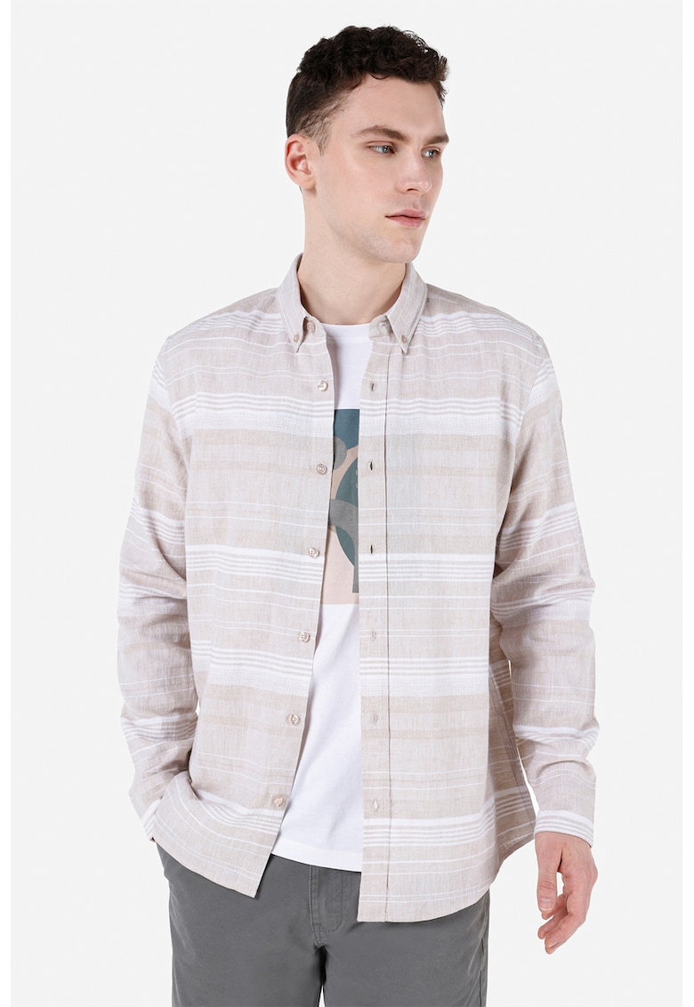 - in Imprimeu: dungi Stil: casual Croiala: regular fit Guler: fixat cu nasturi Maneci: cu mansete cu nasturi Lungime maneca: maneca lunga Sistem inchidere: nasturi Compozitie Exterior: 52% in