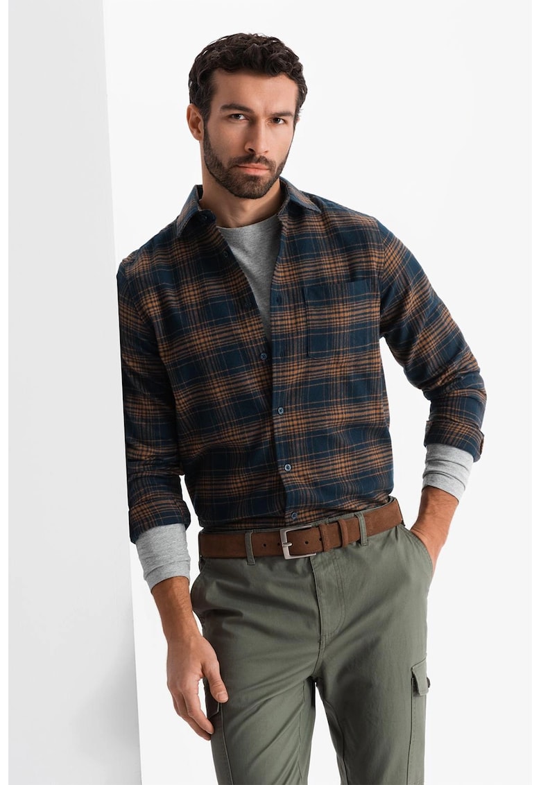 - albastru ultramarin Material: bumbac Imprimeu: carouri Stil: casual Croiala: regular fit Guler: ascutit Lungime maneca: maneca lunga Detalii: material din flanel Sistem inchidere: nasturi Compozitie Exterior: 100% bumbac
