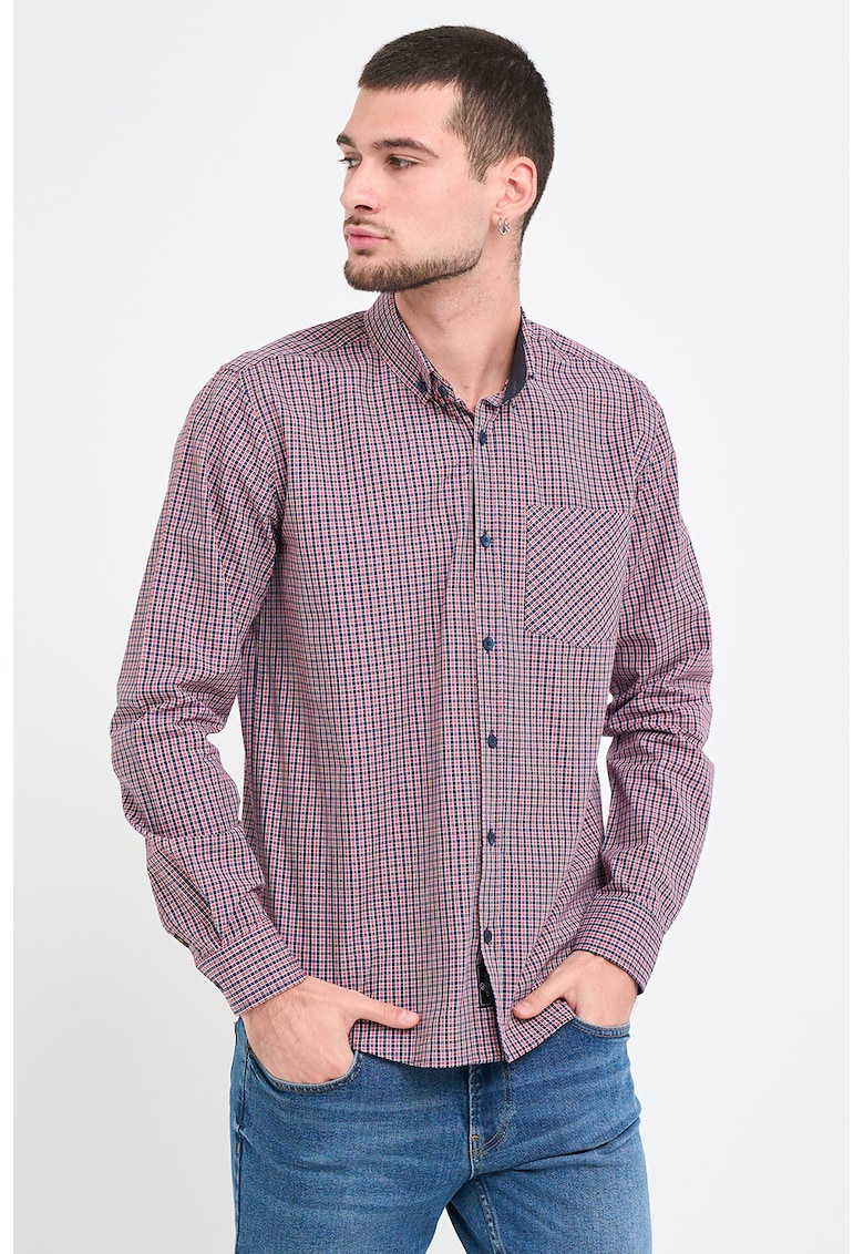 - alb murdar Material: bumbac Imprimeu: carouri Stil: casual Croiala: regular fit Guler: fixat cu nasturi Lungime maneca: maneca lunga Buzunare: aplicatie frontala Sistem inchidere: nasturi Compozitie Exterior: 100% bumbac
