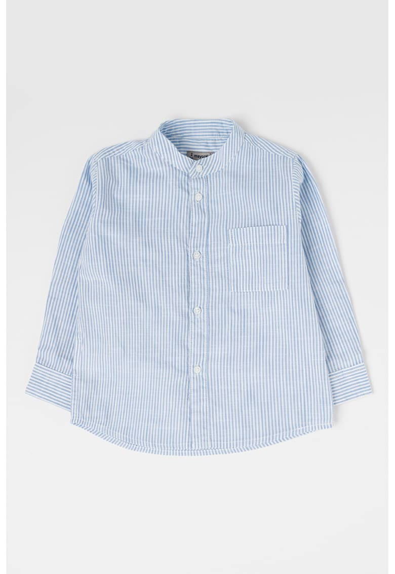 - albastru pastel Imprimeu: dungi Material: bumbac Stil: casual Croiala: regular fit Guler: mao Tip maneca: lunga Buzunare: aplicatie frontala Colectie: primavara