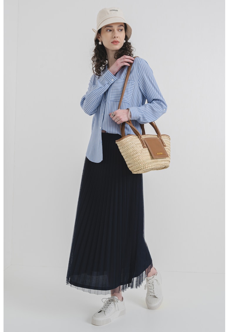 - albastru Imprimeu: dungi Stil: casual Material: viscoza Croiala: regular fit Guler: clasic Lungime maneca: maneca lunga Sistem inchidere: nasturi Compozitie Exterior: 100% viscoza Info model Modelul poarta un produs de marimea S/36 EU. Marimi model: 177 cm inaltime