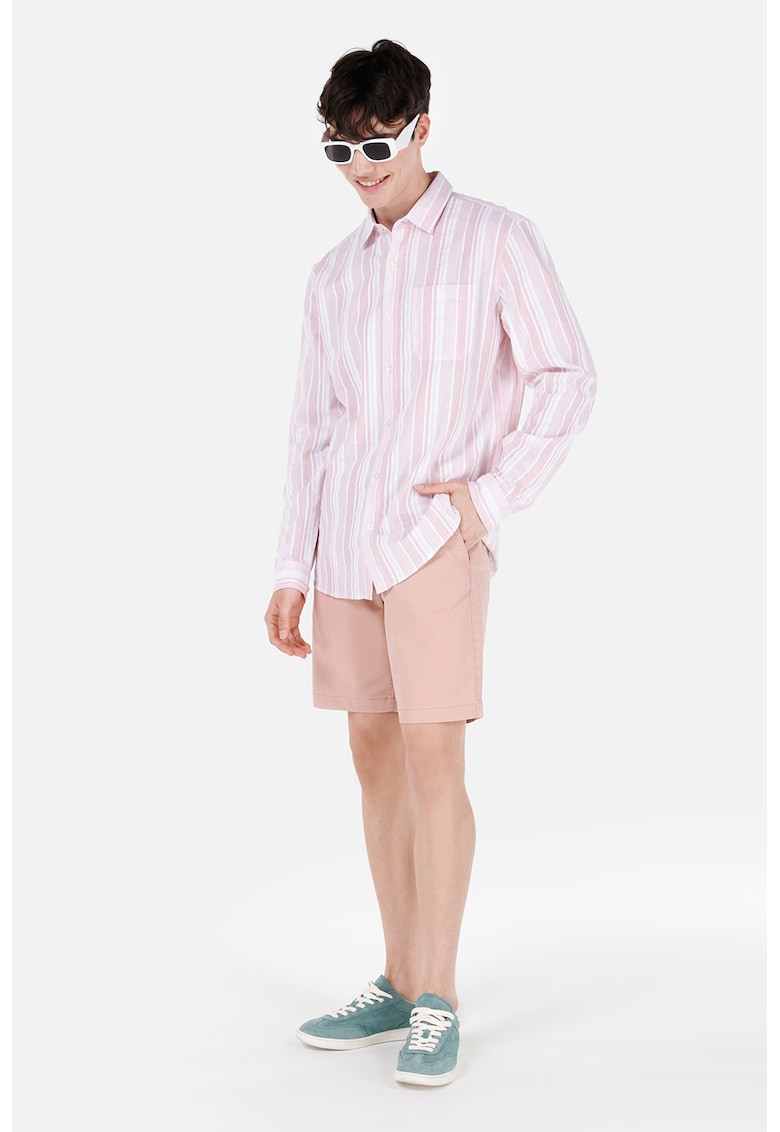 - in Imprimeu: dungi Stil: casual Croiala: regular fit Guler: clasic Maneci: cu mansete cu nasturi Lungime maneca: maneca lunga Buzunare: unul aplicat pe piept Sistem inchidere: nasturi Compozitie Exterior: 98% bumbac