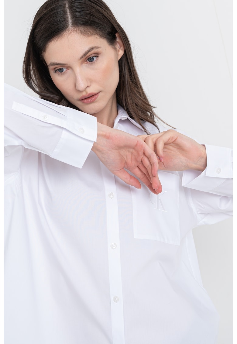 Caracteristici Culoare: alb optic Imprimeu: uni Stil: casual Material: bumbac Croiala: lejer Guler: ascutit Lungime maneca: maneca lunga Buzunare: unul aplicat pe piept Sistem inchidere: nasturi Compozitie Exterior: 100% bumbac Info model Modelul poarta un produs de marimea S. Marimi model: 176 cm inaltime