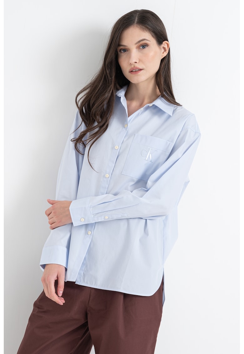 Caracteristici Culoare: albastru glaciar Imprimeu: uni Stil: casual Material: bumbac Croiala: lejer Guler: ascutit Lungime maneca: maneca lunga Buzunare: unul aplicat pe piept Sistem inchidere: nasturi Compozitie Exterior: 100% bumbac Info model Modelul poarta un produs de marimea S. Marimi model: 176 cm inaltime