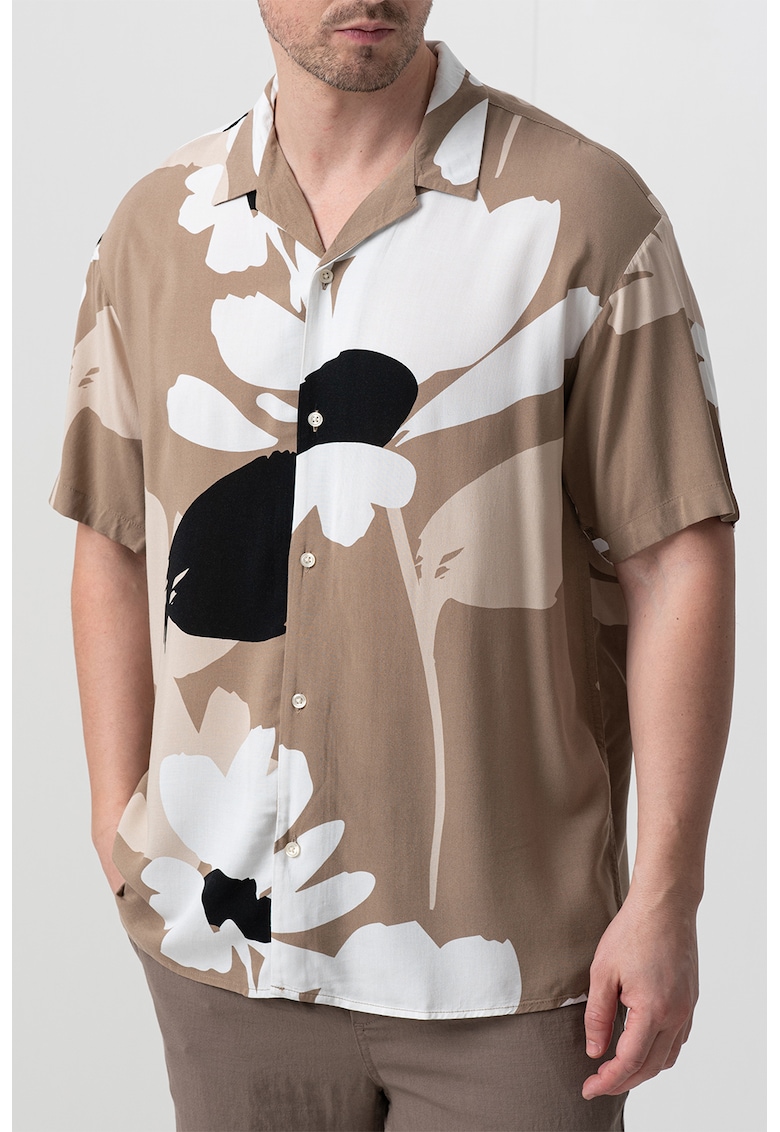 - maro taupe Material: viscoza Imprimeu: floral Stil: casual Croiala: relaxed fit Maneci: cazute Lungime maneca: maneca scurta Sistem inchidere: nasturi Compozitie Exterior: 100% viscoza Info model Modelul poarta un produs de marimea M. Marimi model: 188 cm inaltime