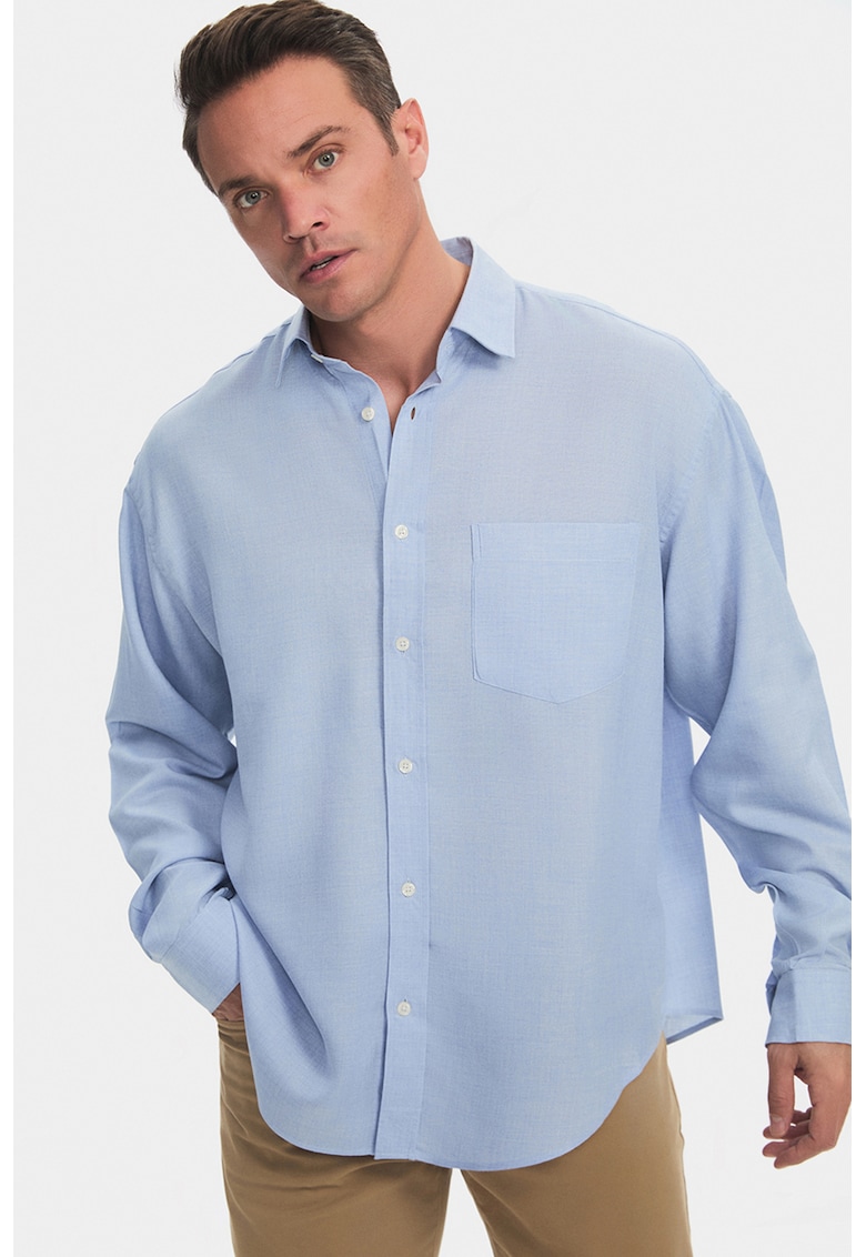 - modal Imprimeu: uni Stil: casual Croiala: relaxed fit Guler: ascutit Lungime maneca: maneca lunga Buzunare: aplicatie frontala Sistem inchidere: nasturi Compozitie Exterior: 70% modal