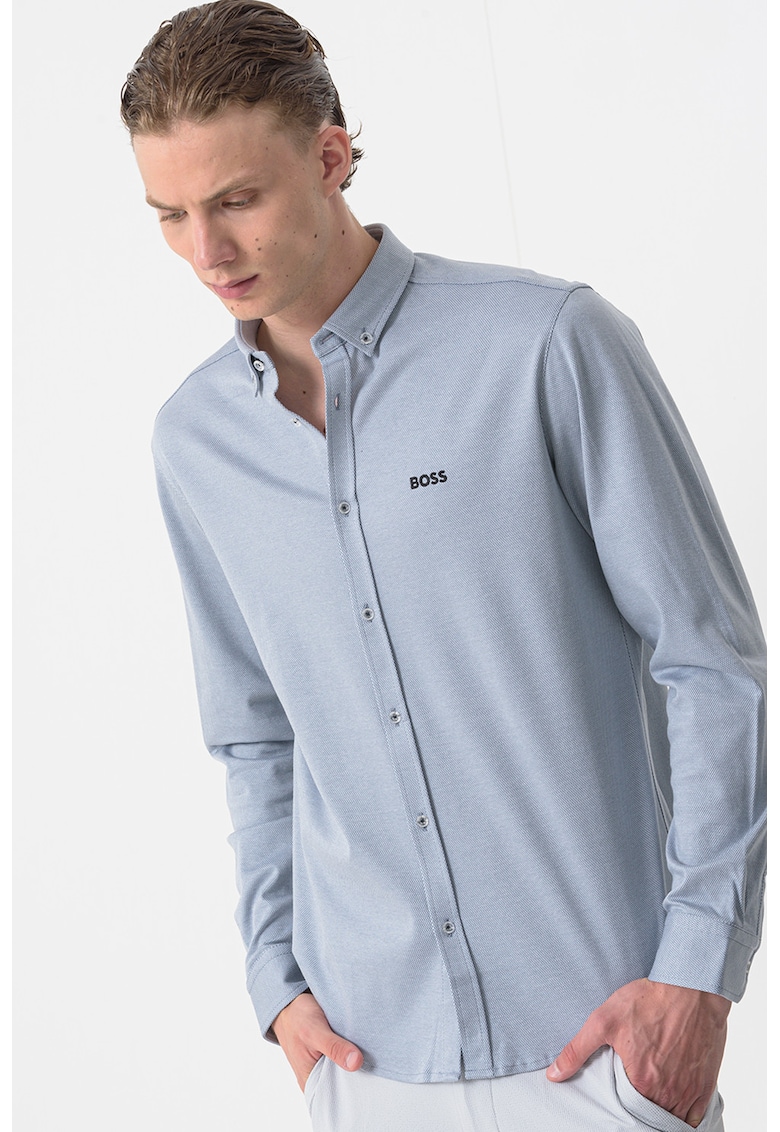 Caracteristici Culoare: albastru prafuit Material: bumbac Imprimeu: uni Stil: casual Croiala: regular fit Guler: oxford Lungime maneca: maneca lunga Sistem inchidere: nasturi Compozitie Exterior: 100% bumbac Info model Modelul poarta un produs de marimea M. Marimi model: 170 cm inaltime