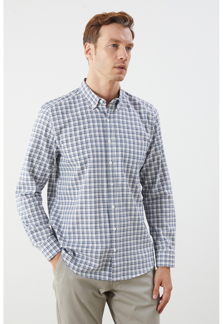 - bumbac Imprimeu: carouri Stil: casual Croiala: regular fit Guler: oxford Lungime maneca: maneca lunga Sistem inchidere: nasturi Compozitie Exterior: 51% bumbac