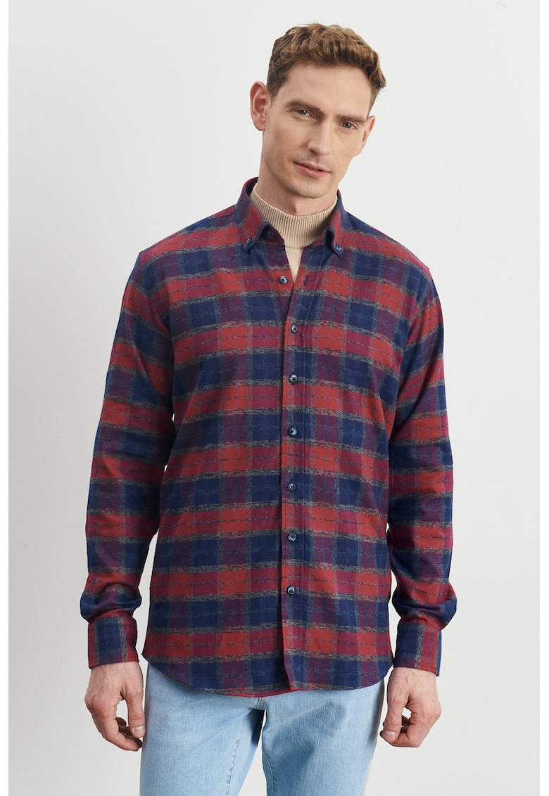 - bleumarin Material: bumbac Imprimeu: carouri Stil: casual Croiala: regular fit Guler: oxford Maneci: mansete cu nasturi Lungime maneca: maneca lunga Sistem inchidere: nasturi Compozitie Exterior: 100% bumbac
