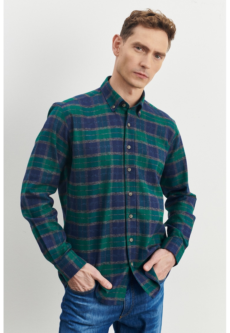 - bleumarin Material: bumbac Imprimeu: carouri Stil: casual Croiala: regular fit Guler: oxford Maneci: mansete cu nasturi Lungime maneca: maneca lunga Sistem inchidere: nasturi Compozitie Exterior: 100% bumbac