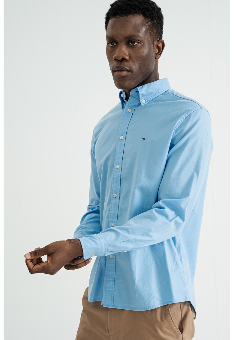 Caracteristici Culoare: albastru pastel Material: bumbac Imprimeu: uni Stil: casual Croiala: regular fit Guler: clasic Lungime maneca: maneca lunga Compozitie Exterior: 98% bumbac