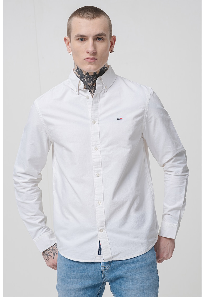 Caracteristici Culoare: alb Material: bumbac Imprimeu: uni Stil: casual Croiala: regular fit Guler: fixat cu nasturi Maneci: mansete cu nasturi Lungime maneca: maneca lunga Sistem inchidere: nasturi Compozitie Exterior: 100% bumbac Info model Modelul poarta un produs de marimea M. Marimi model: 188 cm inaltime