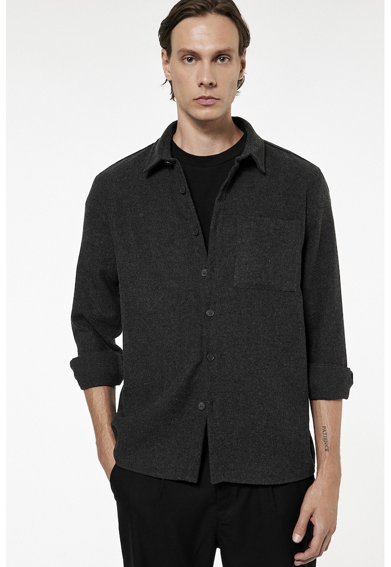 Caracteristici Culoare: negru stins Material: acril Imprimeu: uni Stil: casual Croiala: regular fit Guler: clasic Lungime maneca: maneca lunga Buzunare: 1 buzunar pe piept Sistem inchidere: nasturi Compozitie Exterior: 65% acrilic