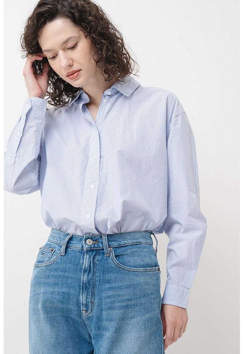 Caracteristici Culoare: albastru Imprimeu: dungi Stil: casual Material: bumbac Croiala: regular fit Guler: clasic Tip maneca: cu mansete Lungime maneca: maneca lunga Sistem inchidere: nasturi Compozitie Exterior: 100% bumbac Info model Modelul poarta un produs de marimea S. Marimi model: 177 cm inaltime