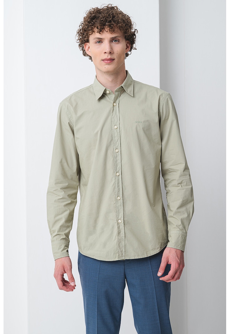 Caracteristici Culoare: verde deschis Material: bumbac Imprimeu: uni Stil: casual Croiala: regular fit Guler: ascutit Lungime maneca: maneca lunga Detalii: logo discret brodat Sistem inchidere: nasturi Compozitie Exterior: 100% bumbac Info model Modelul poarta un produs de marimea M. Marimi model: 190 cm inaltime