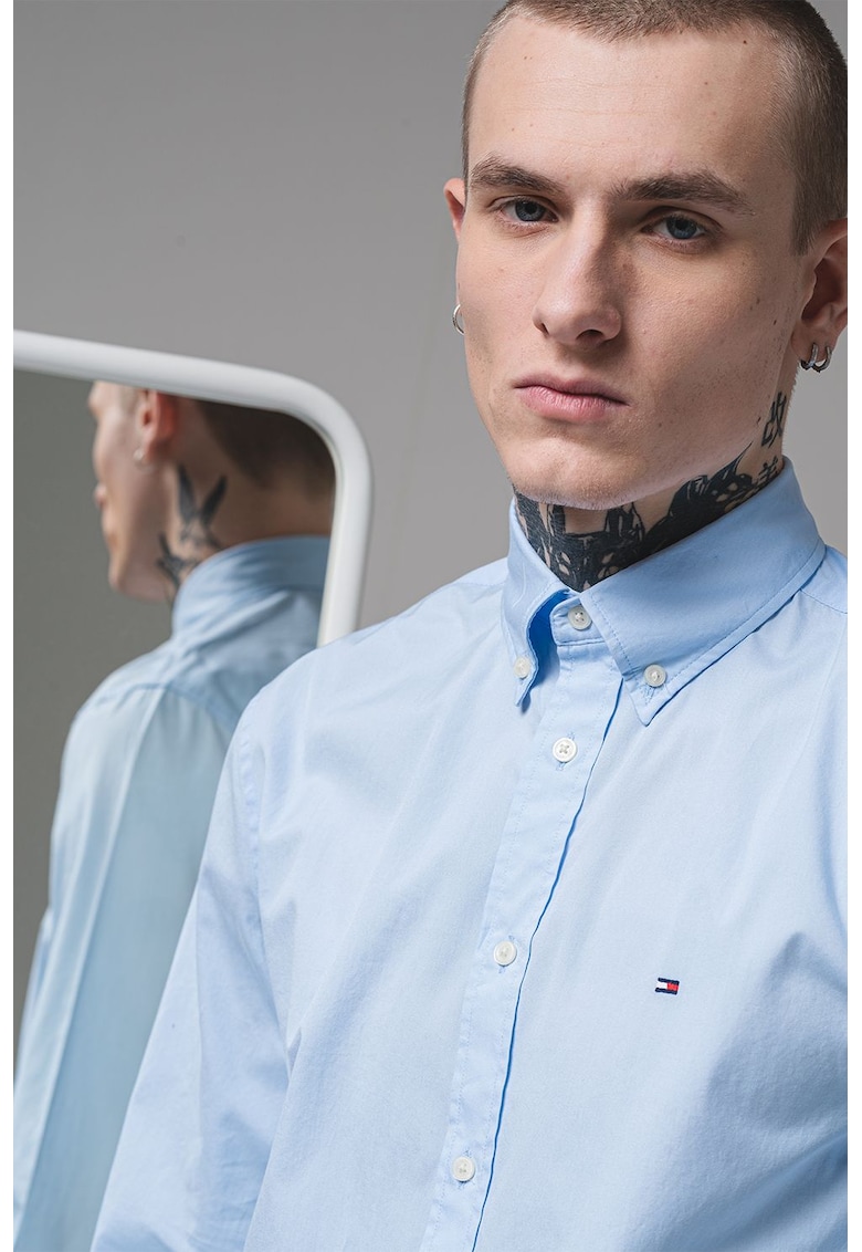Caracteristici Culoare: albastru deschis Material: bumbac Imprimeu: uni Stil: casual Croiala: relaxed fit Guler: fixat cu nasturi Maneci: cu mansete cu nasturi Lungime maneca: maneca lunga Sistem inchidere: nasturi Compozitie Exterior: 100% bumbac Info model Modelul poarta un produs de marimea M. Marimi model: 188 cm inaltime