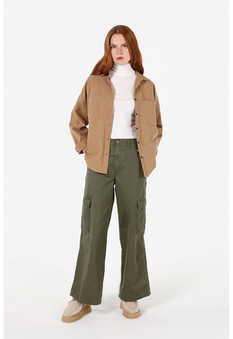 Caracteristici Culoare: maro camel Imprimeu: uni Stil: casual Material: bumbac Croiala: lejer Guler: clasic Tip maneca: cu mansete cu nasturi Lungime maneca: maneca lunga Buzunare: aplicate pe piept Sistem inchidere: nasturi Compozitie Exterior: 100% bumbac