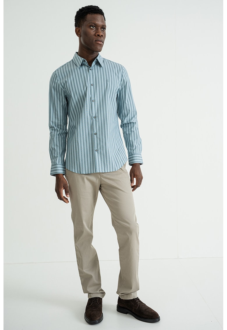 - elastan Imprimeu: dungi Stil: casual Croiala: slim fit Guler: ascutit Lungime maneca: maneca lunga Sistem inchidere: nasturi Compozitie Exterior: 95% bumbac