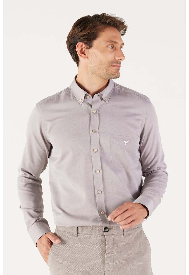 - bumbac Imprimeu: uni Stil: casual Croiala: slim fit Guler: oxford Lungime maneca: maneca lunga Buzunare: pe piept Sistem inchidere: nasturi Compozitie Exterior: 55% bumbac