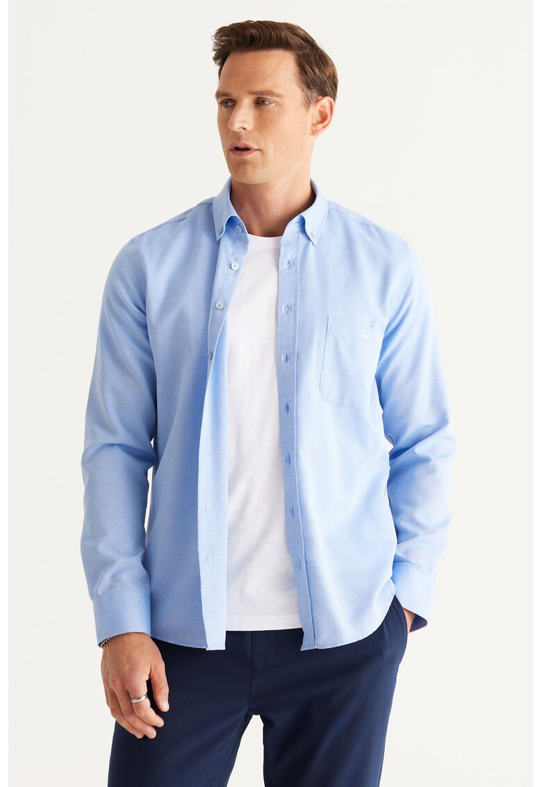 - bumbac Imprimeu: uni Stil: casual Croiala: slim fit Guler: oxford Lungime maneca: maneca lunga Buzunare: pe piept Sistem inchidere: nasturi Compozitie Exterior: 55% bumbac