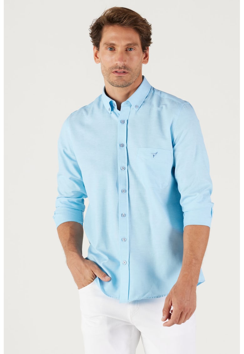 - bumbac Imprimeu: uni Stil: casual Croiala: slim fit Guler: oxford Lungime maneca: maneca lunga Buzunare: pe piept Sistem inchidere: nasturi Compozitie Exterior: 55% bumbac
