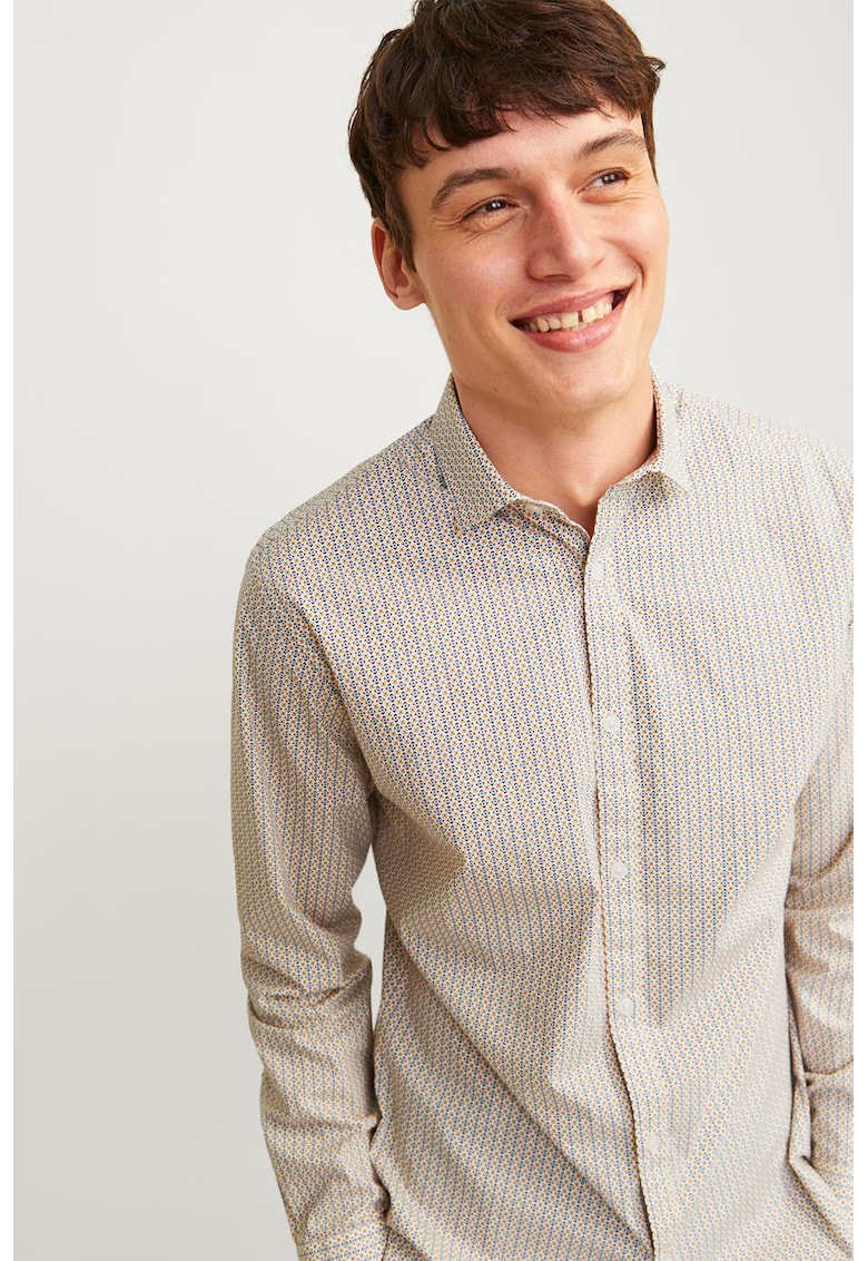 - bumbac organic Imprimeu: grafic Stil: casual Croiala: slim fit Guler: ascutit Lungime maneca: maneca lunga Sistem inchidere: nasturi Compozitie Exterior: 50% bumbac organic